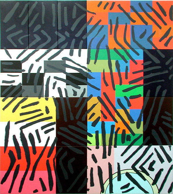 INTERCHANGEABLE#2, 2001, acrylic on canvas, 300 x 265 cm (12 panels)